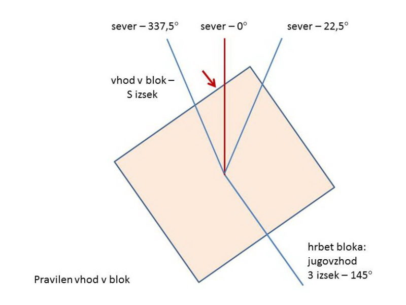 Še enkrat sem šla na Google in pregledovala okolico. Hitro sem odkrila napako: narobe sem označila vhodna vrata v blok. Mislila sem, da so na sredini stene, pa so bolj levo od sredine. To je spremenilo tudi moj izračun v Ba Chop, saj vhodna vrata niso več bila v SZ izseku, ampak v severnem. Naenkrat je analiza pokazala realno energijsko stanje: stanovalci so nezanesljivi in nestabilni, imajo prevratniške ideje (odvisnosti, seks, alkohol), družina ne more profitirati od zaslužka in dela.